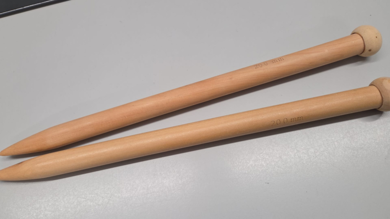 Artikelnummer: 04D-01 OverzichtXXl breinaalden, 20 mm dik gemaakt van hout en ze zijn mooi glad afgewerkt. Er zit een ronde knop op.