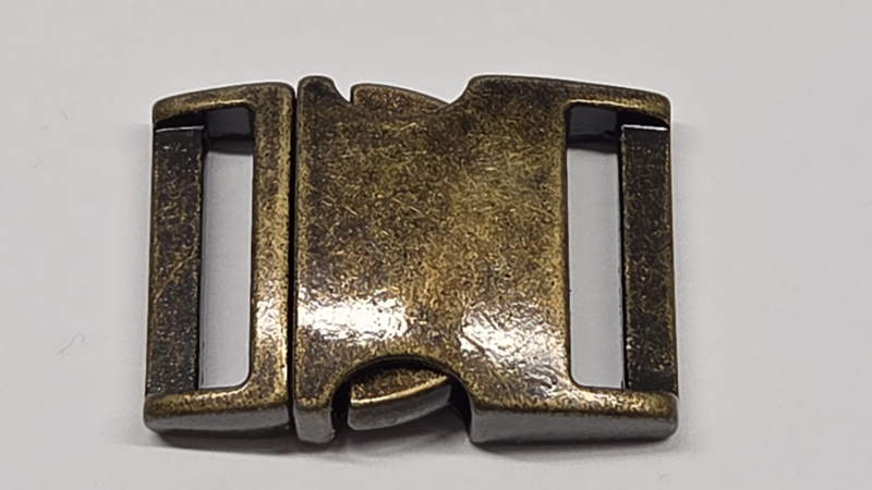Buckle, steeksluiting, klikgesp van metaal, geborsteld antiek messing.